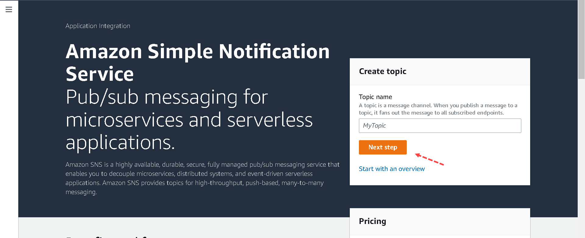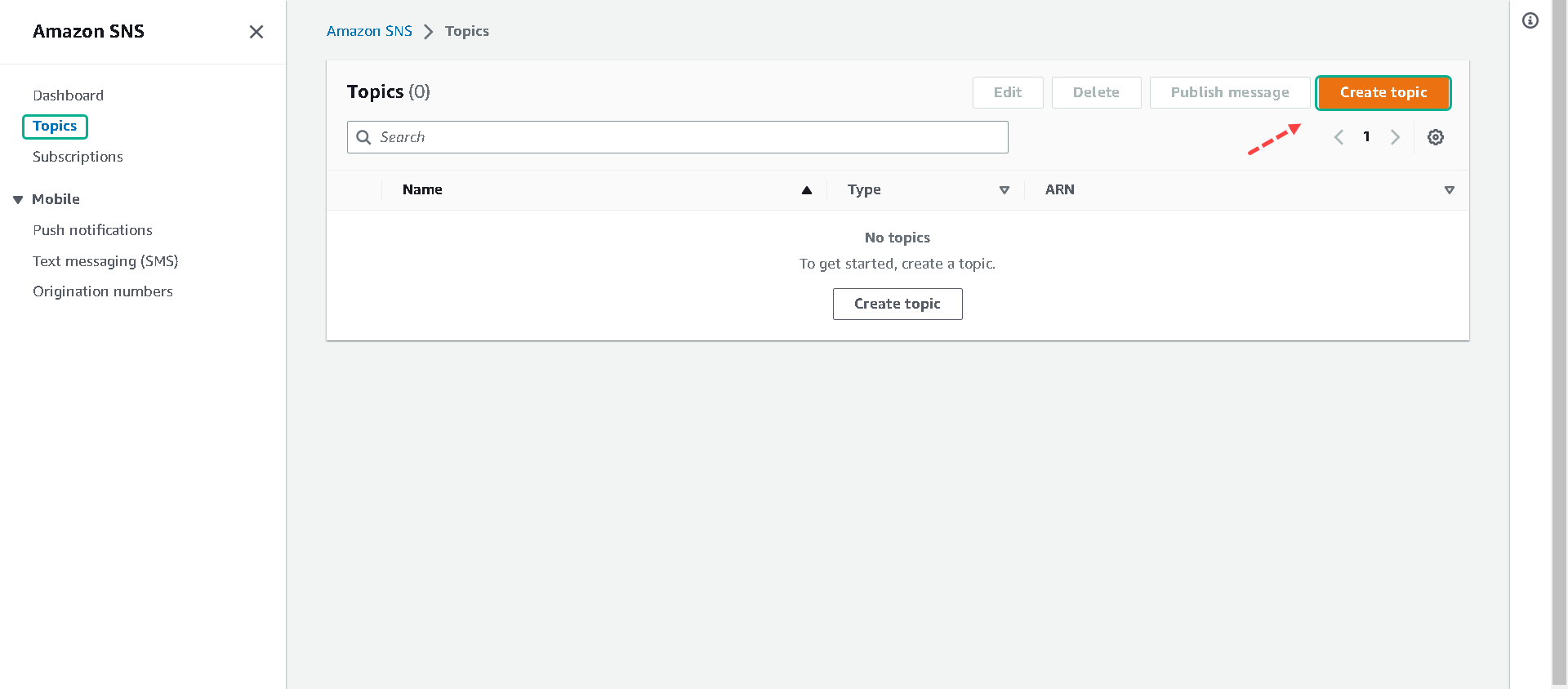 1.In AWS Console, search Simple Notification Service or click Amazon SNS